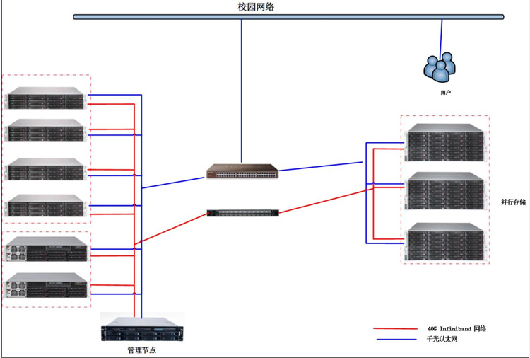在此次項(xiàng)目中,計(jì)算服務(wù)器集群配置超云雙路服務(wù)器,Intel最新Sandy Birdge架構(gòu)CPU,通過高速InfiniBand網(wǎng)絡(luò)進(jìn)行連接,不僅能夠保證單節(jié)點(diǎn)服務(wù)器的計(jì)算性能,也能滿足高密度、可擴(kuò)展以及客戶對網(wǎng)絡(luò)帶寬的要求的集群計(jì)算性能。